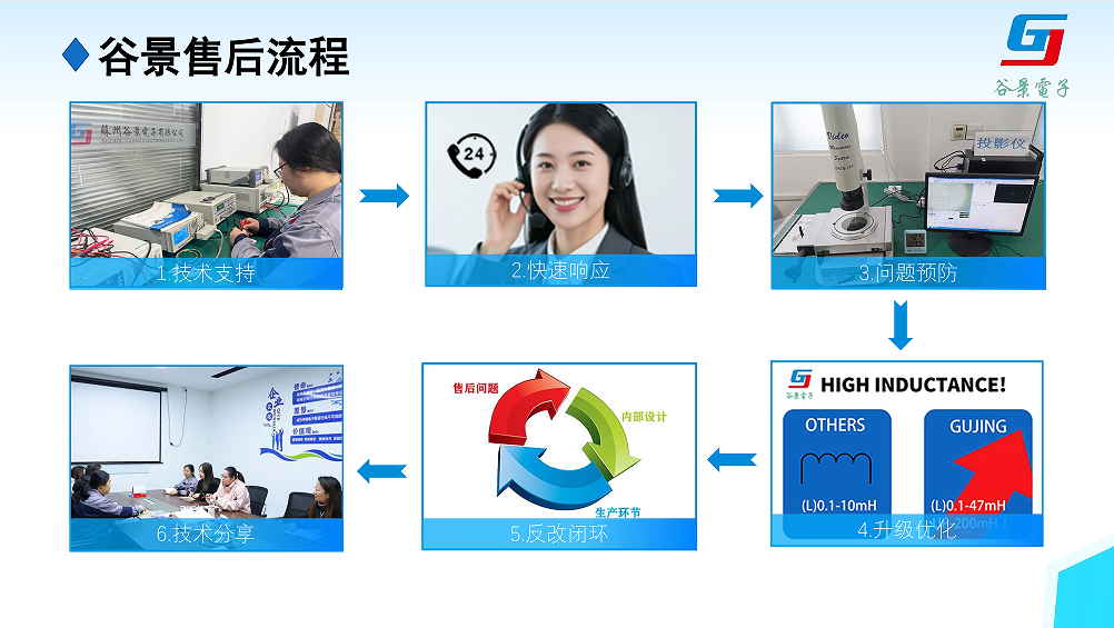 谷景專注電感制造與應用23年,深知電感與其他元器件是深度的“共生關系”,任何單一元件的孤立判斷都無法解決系統性問題。為此,我們建立了一套“先解決,后界定”的技術服務流程——這是我們對每一位采購伙伴的承諾。